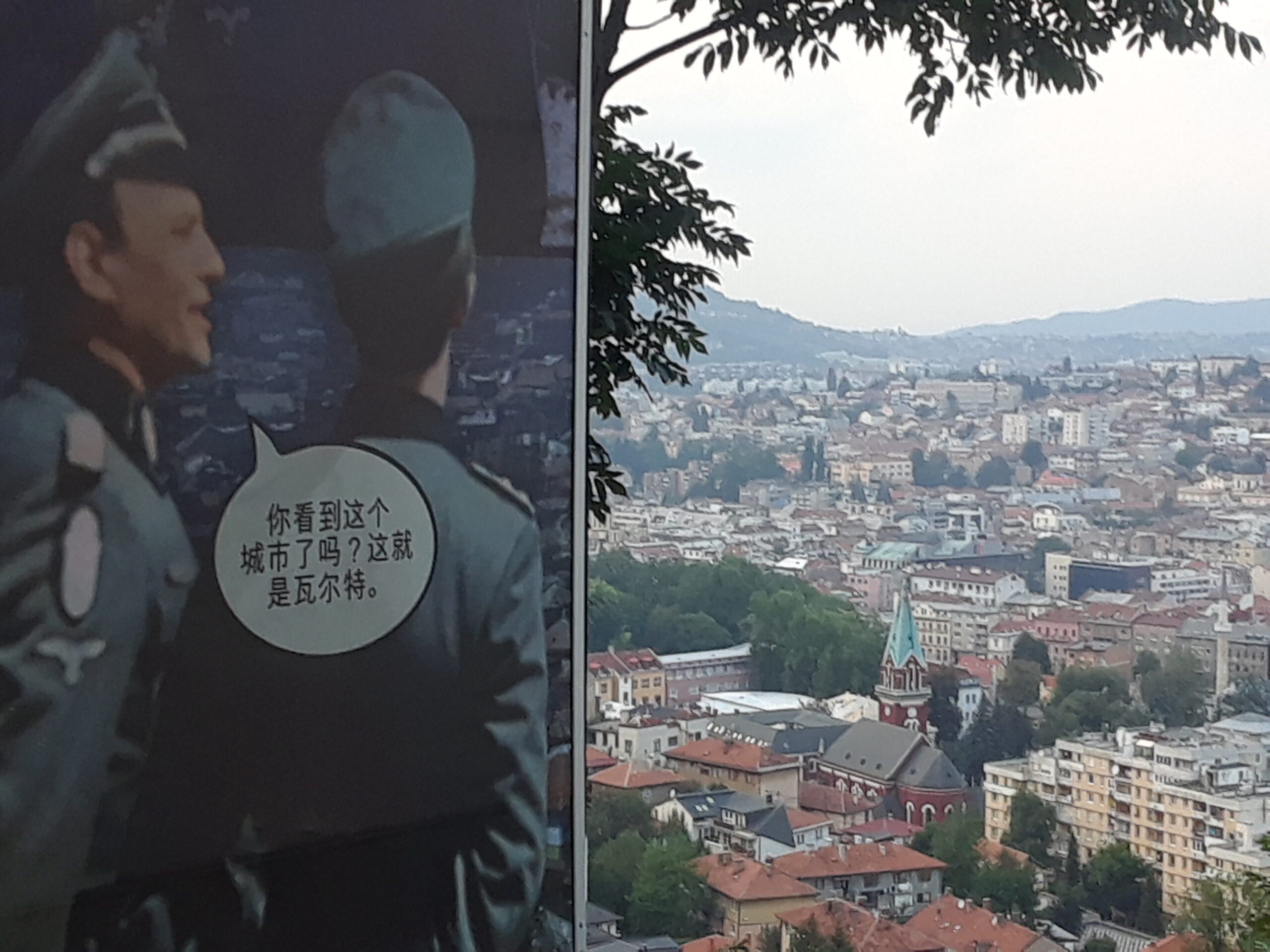 The Walter Museum is expected to be completed in two months and will be located in the Film Center’s building (former Sutjeska Film Studio) in downtown Sarajevo. On the site of Park of the Princes restaurant overlooking the city a giant mural backdrop commemorates some of the scenes from the film – with Chinese subtitles. Even before the media event was over groups of Chinese tourists flocked to the site and started taking photographs. Young couples with children instantly recognized the imagery from the beloved film of their parents’ generation and enthusiastically confirmed that Walter still holds his immortal cinematic place in the hearts of the Chinese people. Bathed in the afternoon light the city of Sarajevo was lying below, its spirited citizenry in the party mood for the film festival. Yet quiet echoes of the legendary film live on in Sarajevo where one line of a movie dialogue forever defined its unconquered spirit. After all this is not an ordinary city. Das ist Walter.